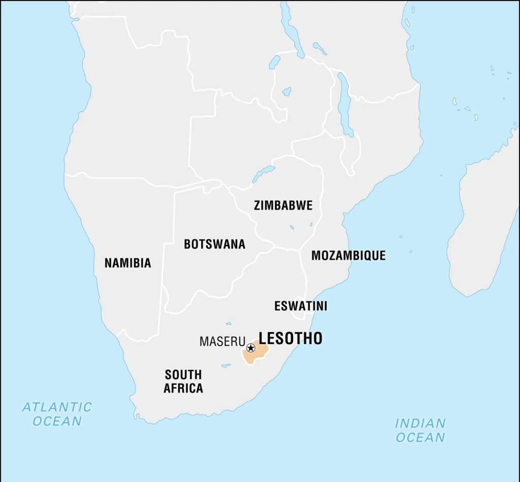 Waa dal yar oo buuraley ah, kana mid ah dalalka ugu yaabka badan Afrika. Waxa uu dhacaa Koonfurta qaarada Afrika, khariiradiisuna waa mid gaar ah oo gabi ahaanba dalkaan waa mid la dhihi karo wuxuu dhacaa gudaha dalka Koonfur Afrika marka la eego xuduudihiisa—waxeyna tani dalkaan ka dhigaysa mid ka mid ah dalalka dunida ee leh dhul gebi ahaanba hareeraysan (enclave state).
