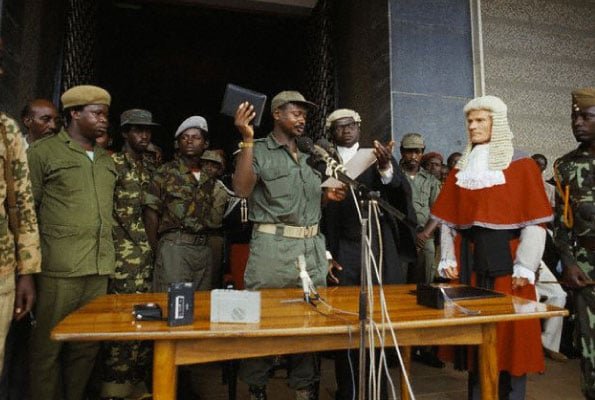 Kadib dalka Uganda wuxuu cagaha la galay fawdo siyaasadeed. Intii u dhaxeysay 1979 ilaa 1986, Uganda waxaa soo maray 6 madaxweyne, kuwaas oo badankood xukunka ku yimid si kumeelgaar ah ama afgambi milatari. Burburka siyaasadeed iyo dagaallada sokeeye kadib, koox mucaarad ah oo hubeysan oo lagu magacaabi jiray National Resistance Army (NRA), ayaa la dagaalamaysay xukuumadihii is-bedbedelayay. Jabhadaasna waxaa hoggaaminayay Yoweri Kaguta Museveni, oo markii dambe talada dalka la wareegay Janaayo 1986.